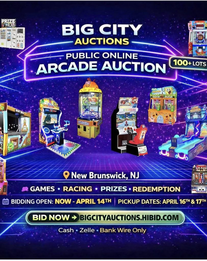 AUCTION IN SOUTH NJ…WEDNESDAY FEB 25 2026 ONLINE . LOADED WITH ALL SIZE INFLATABLE OBSTACLE COURSES…SLIDES…BOUNCE HOUSES…ARCADE GAMES..BENCHES..BAZOOKA BALL ATTRACTION..CAFETERIA STYLE SEATING…PUCKER POWDER KIOSK…FRIDGES..DJ LIGHTING…SPEAKERS…AMPS…BOXES OF TOYS..CLAW GAMES..AIR HOCKEY ETC…PARTY GOODS..SHOE RACKS…TOO NUMEROUS TO MENTION…